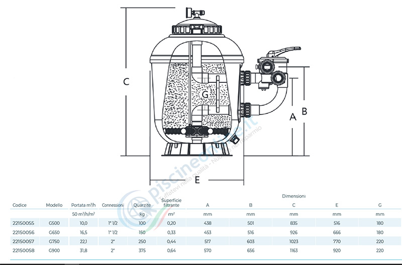FILTRO A SABBIA IN POLIESTERE E FIBRA DI VETRO...