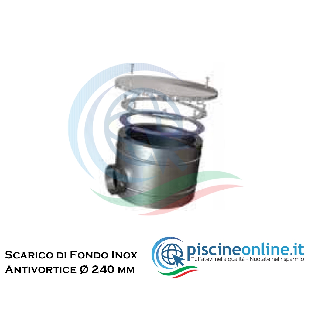 SCARICO DI FONDO ANTI-VORTICE IN ACCIAIO INOX AISI 316 - Ø 240 MM, 2,1/2”, PORTATA 30MC/H