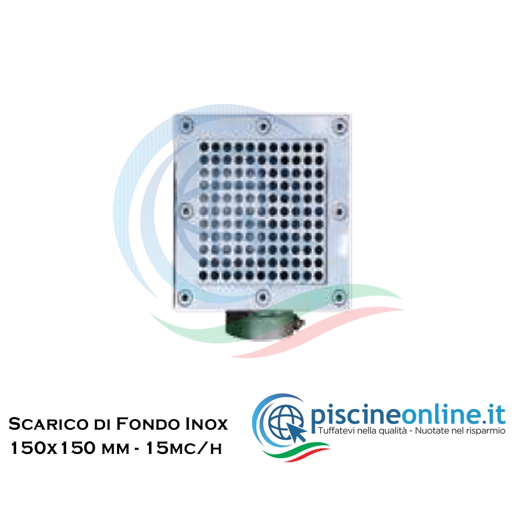 SCARICO DI FONDO IN ACCIAIO INOX AISI 316 - 150X150 MM - PER LINER 2"F - PORTATA 15MC/H